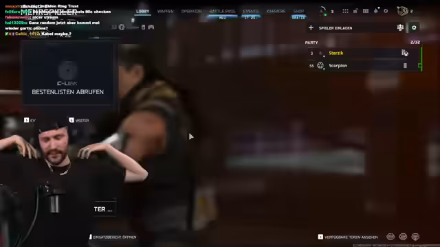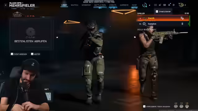 02:02:01Marcel Scorpion schließt sich dem Stream an, und das gemeinsame Spiel von Call of Duty: Black Ops 7 beginnt. Es folgt eine Diskussion über Spielmechaniken, Einstellungen und die Qualität der Maps, wobei nostalgische Erinnerungen an frühere COD-Teile wie Black Ops 2 aufkommen. Das Duo tauscht sich über Strategien aus, vergleicht Skills und reflektiert die Entwicklung der COD-Reihe, während sie sich in einer herausfordernden Lobby beweisen. Das Gameplay wird von technischen Problemen und kritischen Kommentaren zur aktuellen Meta begleitet.