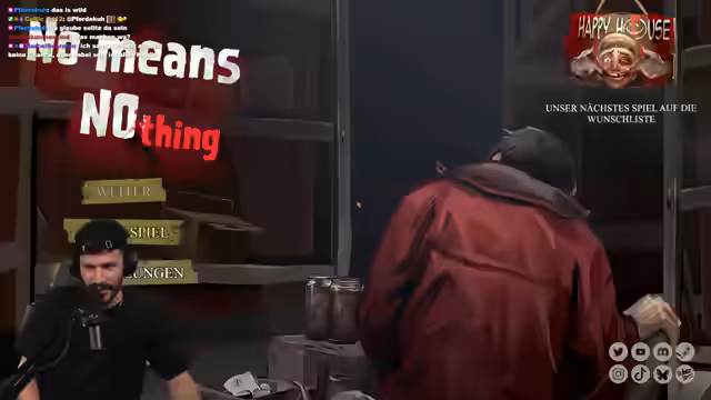 00:45:47Das Spiel ‚No Means Nothing‘ der Boba Bros. wurde gestartet. Vor dem Spielbeginn wurden deutliche Trigger-Warnungen eingeblendet: Inhalte behandeln Nötigung, psychische Gewalt, homophobe Sprache und sexuelle Belästigung. Die Story basiert auf persönlichen Erfahrungen des Entwicklers mit anonymisierten Details. Nach einem kurzen Prolog mit familiärem Streit zwischen Spielcharakter und Mutter startete das eigentliche Gameplay, das gesellschaftlich relevante Themen aufgreift.