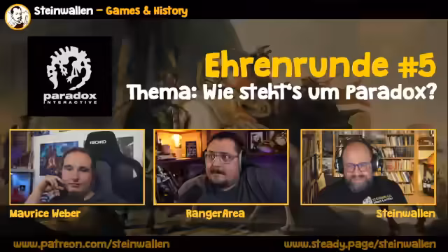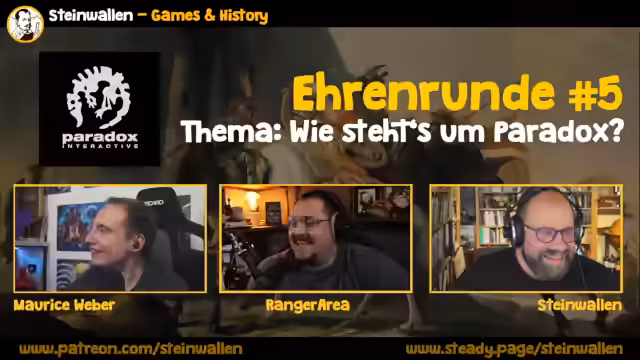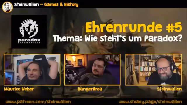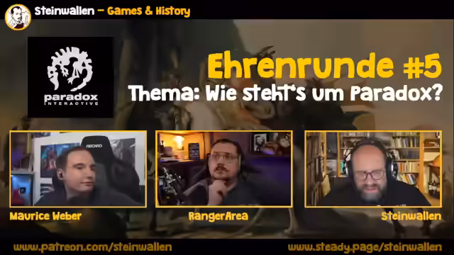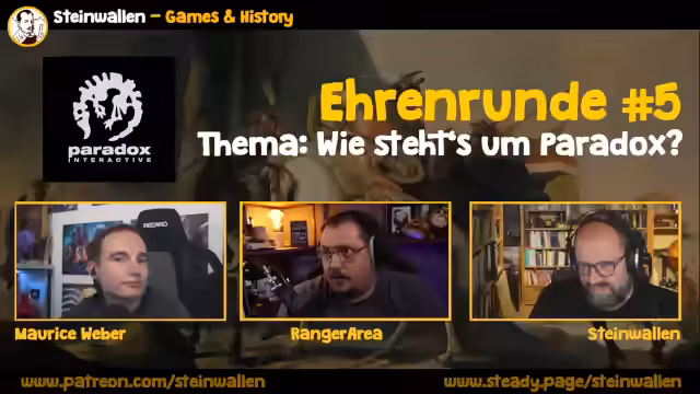 In einem umfassenden Livetalk nehmen Maurice Weber und Ranger die aktuelle Situation von Paradox Interactive unter die Lupe. Sie diskutieren kritisch die Publishing-Entscheidungen, die Erfolge und Misserfolge der letzten Jahre sowie die Entwicklung der Grand Strategy-Kernspiele. Anschließend startet eine gemeinsame Europa Universalis 5-Session mit Maurice, der das Spiel zum ersten Mal erkundet.