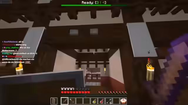 02:59:07Nach einigen Runden liegt der Punktestand bei 16 zu 15 zu 15 zu 12. Die Spieler analysieren ihre Performance, wobei Heiko und Kevin aufholen. Die 5-Hexen-Wave verursacht Schwierigkeiten, da Lava-Eimer zwar eingesetzt, aber nicht optimal genutzt werden. Heiko und ein anderer Spieler haben die Runde knapp überlebt. Taktiken wie der Einsatz von Invis-Potionen oder das Nutzen von Bäumen für den Vorteil werden besprochen, wobei sich der Konsens dahin verdichtet, dass bestimmte Items wie Stärke-Potions als dumm gelten.