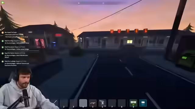 06:07:22Der Streamer steht vor seiner Chemistry Station und beginnt mit der Herstellung von Crystal Meth, wobei er den Prozess filmt. Er füllt alles in einen Behälter, rührt um und erhitzt die Mischung. Nach acht Minuten ist das Meth fertig gekocht. Es wird besprochen, dass die Kristalle erst noch härten und kleingehackt werden müssen. Der Streamer plant, bald wieder dealen zu gehen. Durch einen Fehler im Spiel verliert er 250 Dollar. Es wird Nacht, und der Streamer und sein Partner bereiten sich darauf vor, Pseudo zu kaufen, um mehr Meth herzustellen. Jemand hat 360 Pseudo gekauft und lässt Kohle für die beiden übrig. Der Streamer holt Acid und Phosphorus, während sein Partner Pseudo von Shirley besorgt. Es wird überlegt, den ATM kaputt zu hauen. Der Streamer verkauft sein restliches Kush und hebt Geld ab, um nicht ausgeraubt zu werden. Er vertraut einem neuen Geschäftspartner namens Querschlag. Der Streamer kauft 10 Pseudo von Shirley, obwohl er eigentlich 11 wollte. Es wird überlegt, ob das Limit mit Vertrauen zusammenhängt.