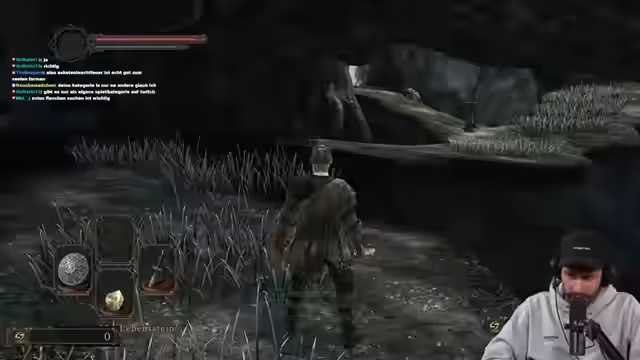 02:56:15Der Streamer kämpft mit Problemen aus Dark Souls 1 und fragt, ob es Sinn macht, sich die Scherbe zu holen und sich dann zu verpissen. Der Gegner despawnt, wenn man abhaut. Er holt sich die Estus-Scherbe und fragt, ob er jetzt schon Punkte hat. Er will das Geld für ein Level investieren und den Rapier leveln. Er fragt, wo er mehr Titanitscherben Early Game findet. Der Blacksmith verkauft sie für 800 Seelen. Er tötet einen NPC für einen Ring, der die körperliche Abwehr erhöht. Er braucht noch ein paar Seelen und will in ein Haus rein. Er hasst die Zuschauer und will nicht über Skincare reden. Er findet eine Titanitscherbe und will nicht darüber reden, sondern Hilfe beim Dark Souls spielen. Er ist in Gefahr und bittet um Hilfe. Er findet Skelette und stirbt das erste Mal. Er glaubt, keine Punkte zu haben. Er findet ein Seelengefäß, mit dem man reskillen kann. Er hat viele Titanitscherben und könnte direkt nochmal leveln. Er fragt, ob das Mobbing ist.