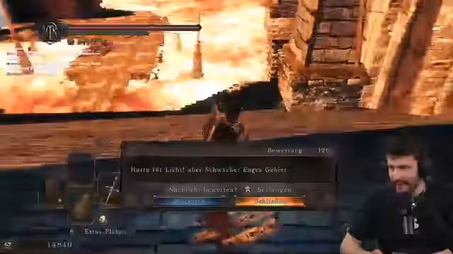 01:38:27Der Streamer befindet sich im Spätspiel von Dark Souls 2 und konzentriert sich auf die Bekämpfung verbleibender Bosse, um einen No-Death-Run (Flawless) zu absolvieren. Themen sind die Strategie gegen die Drachenreiter, die Havel-Sentinel und die Bewältigung nerviger Gegner in den Katakomben, wie dem zweiten Golem, den er als Lichtschalter bezeichnet. Es geht um Loot-Sammeln, die Planung des weiteren Vorgehens und die Ankündigung einer Kanalwette bezüglich des nächsten Bosskampfes.