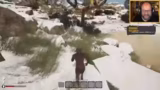 02:40:50Der Streamer beginnt mit einem Survival-Spiel, das in einer lebensfeindlichen Urwelt spielt. Er kämpft mit extremem Frost, der seine Lebensenergie rapide senkt, und ist auf der Suche nach Nahrung wie Trauben und Beeren, um zu überleben. Das Klettern ist gefährlich und er stürzt häufig, was seine Gesundheit weiter beeinträchtigt. Nach mehreren gescheiterten Versuchen, sich eine Axt herzustellen, um Bäume zu fällen, findet er schließlich eine Möglichkeit und verbessert seine Ausrüstung. Er stellt eine Keule her, um sich gegen Tiere wie Hyänen verteidigen zu können und jagt erfolgreich ein Tier, um an Fleisch zu gelangen. Er baut ein Feuer und brät das erste Fleisch für die Menschheit, was einen zivilisatorischen Durchbruch darstellt.
