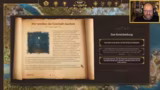 01:25:06Ein Stern ist im Wald von Veridor niedergegangen. Eine Expedition findet am Ende der Woche ein Fragment des kosmischen Eisens und übergibt es dem Schmied zur Untersuchung. Dies ermöglicht erste Investitionen. Der Fokus verlagert sich jedoch auf die Stadtentwicklung. Es werden Gebäude wie eine Bank, ein Gasthaus, ein Getreidespeicher und eine Badehaus errichtet, die alle Boni auf Initiative, Gesundheit oder Bevölkerung bringen. Die Gründung der 'Volkskönigsbank' beschert zwei Initiative pro Zug.