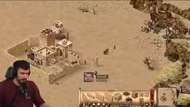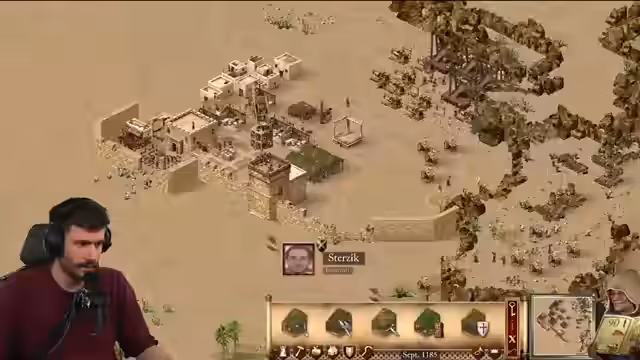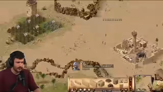 00:14:51Der Streamer wechselt zum Thema Stronghold Crusader Definitive Edition und startet die finale Koop-Mission 'Teufelsschlucht' mit seinem Mitspieler Max. Die anfängliche Lage ist prekär: die wirtschaftliche Basis ist schwach, Feinde sind nah und wichtige Ressourcen wie Nahrung und Stein müssen erst gesichert werden. Es wird eine frühe Offensive gegen einen aggressiven Nomaden erwogen, und der Streamer gibt seinem Mitspieler Tipps zur Verteidigung und zum Aufbau einer stabilen Wirtschaft.