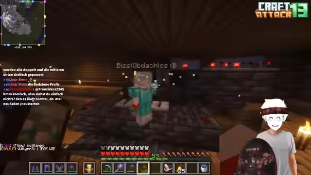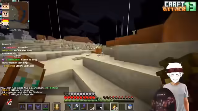 00:08:58Der Streamer beginnt den Stream mit der Feststellung, dass er nur etwa 4 Stunden und 38 Minuten geschlafen hat, was auf ein erhebliches Schlafdefizit seit dem Start von Craft Attack hinweist. Er betont, dass er maximal fünf Stunden Schlaf hatte und das Minimum bei drei Stunden und zwanzig Minuten lag. Trotz der Müdigkeit ist er froh, online zu sein und weiterspielen zu können. Er erwähnt, dass es neue Leute auf der Whitelist gibt, insbesondere Basti Ori, und begrüßt die Zuschauer. Währenddessen kommuniziert er mit anderen Spielern im Voice-Chat, darunter Ali Toto und Wieland, und es kommt zu humorvollen Interaktionen und gegenseitigen Komplimenten über Aussehen, Witz und interessante Lebensweisen, wobei Wielands Leben als besonders mysteriös und interessant beschrieben wird, im Gegensatz zu anderen, deren Tagesabläufe bekannter sind.