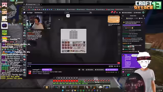 15:07:14Der Streamer und ein weiterer Teilnehmer, Hugo, unterhalten sich über den Chatverhalten und die Unterschiede zwischen den verschiedenen Communitys. Es wird darüber diskutiert, wie man neue Zuschauer integrieren kann und wie man trolliges Verhalten umgeht. Eine längere Debatte über die Auswirkungen von massivem Schlafentzug auf die Performance und das Gemüt des Streamers führt zu Überlegungen, einen festen 'Offline-Tag' für die Teilnehmer von Craft Attack einzuführen, um die mentale Gesundheit zu schützen.