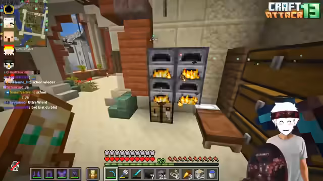 06:22:08Ein unerwarteter Besuch des Vermieters um 17:12 Uhr, der gemeinsam mit einem Heizungsinstallateur die defekte Heizung reparieren sollte, führt zu einer chaotischen Situation. Die Streamer, mitten in einem lautstarken Rollenspiel mit Schreieinlagen und Beleidigungen wie 'Bastard', haben nicht bemerkt, dass der Vermieter bereits anwesend war. Dies löst bei Stegi die Angst aus, der Nachbar könnte seine Arbeit als Streamer nicht ernst nehmen und sich durch das laute Verhalten gestört fühlen. Man überlegt, ob der Heizungsinstallateur von dem Besuch berichten wird und wie die Situation im Rahmen des Events Craft Attack 13 gehandhabt werden soll.