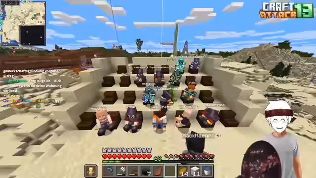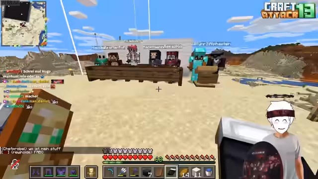 01:23:36Die Gruppe ist in einem Minecraft-Spiel beschäftigt. Es kommt zu einem verbalen Schlagabtausch, bei dem die Stärken und Schwächen der einzelnen Teilnehmer humorvoll und provokant aufgearbeitet werden. Hugo wird beispielsweise gefragt, in welchen Bereichen er besser ist als die anderen. Themen wie PVP, Videoschnitt, Autofahren, Mathe und Raketenbau werden humorvoll diskutiert. Auch persönliche Geschichten, wie Hugo, der auf einer Party fast wegen Urinierens verprügelt worden wäre, oder technische Probleme, wie ein geänderter Ingame-Name, werden angesprochen.