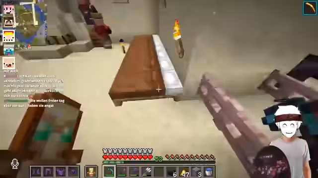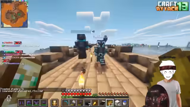 07:40:37Der Streamer unterhält sich mit Exe über dessen Spielgewohnheiten auf dem Craft & Tech Server, wobei Exe angibt, fast den ganzen Tag zu spielen. Sie besprechen die beeindruckenden Bauwerke von Exe, insbesondere eine aufwendige Brücke, die er von Hand gebaut hat. Es wird erwähnt, dass Exe keine automatischen Farmen besitzt und jeder Stein manuell abgebaut wird. Die Diskussion dreht sich auch um technische Aspekte, als ein Texture Pack und zwei kleine Mods zur Sprache kommen, die das Aussehen des Ghasts in Minecraft verändern, sodass er einem Appa aus 'Avatar: Herr der Elemente' ähnelt. Das Interesse an diesem Mod ist groß, und es wird überlegt, wie man es mit anderen teilen kann, wobei der Streamer und seine Freunde überrascht feststellen, dass einige den Animationsklassiker 'Avatar: Herr der Elemente' nicht kennen.
