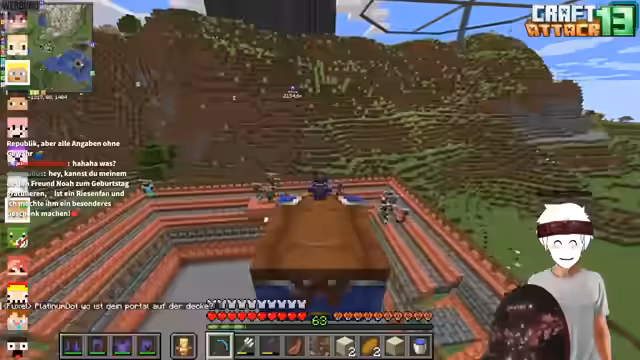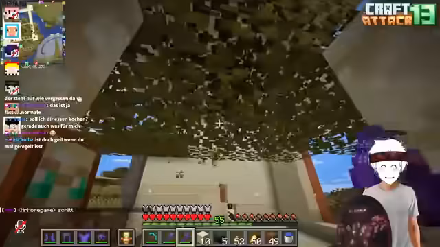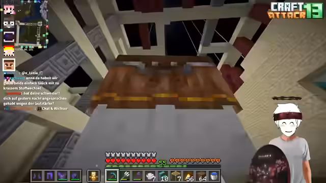 Der Spieler berichtet von erheblichem Schlafdefizit seit dem Start von Craft Attack. Trotz Müdigkeit konzentriert sich die Gruppe auf den Bau einer Raidfarm. Parallel dazu entstehen Ideen für innovative Formate, darunter ein Tag mit Zuschauern bei deren Berufen und ein "Deal or No Deal"-Event. Diskussionen über ungewöhnliche Kino-Erlebnisse und ein Minecraft-Quiz sorgen für Unterhaltung.