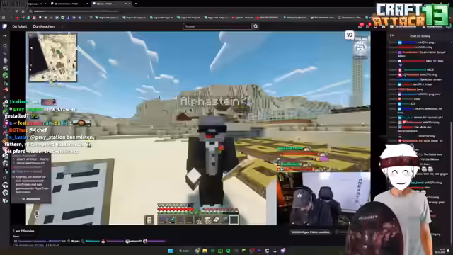 14:56:25Nach dem offiziellen Ende des Spiels führen die Streamer eine Bauphase durch, die auf Servern wie Minecraft stattfindet. Ein 'Bautrio' interagiert mit einem Bewohner namens Sydney, der zunächst skeptisch ist. Die Gruppe repariert und baut gemeinsam, was zu einem positiven Abschluss führt. Der Streamer und sein Team überlegen, wie das Gameplay für zukünftige Events verbessert werden kann, wie z.B. durch eine Mod für schnelleren Skinwechsel.