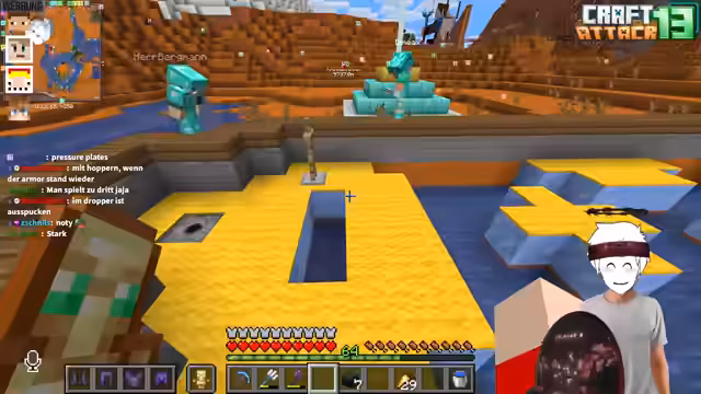 03:15:53Im Stream geht es um die Planung eines neuen Events. Zuerst werden die Biome für eine Karte besprochen, wobei Streamer zunächst vier Biome plant, aber später auf zwei oder drei reduziert, um Qualität zu gewährleisten. Anschließend wird das Konzept für ein Minecraft-Quiz in 4-vs-4-Teams vorgestellt, das nicht auf Wiki-Wissen basiert, sondern auf abstrakten Zusammenhängen und kreativen Fragen. Ein weiteres Event, ein Golf-Turnier für Teams, wird ebenfalls angekündigt, bei dem die Spieler sich abwechseln müssen. Für das Golf-Event ist eine Redstone-Konstruktion zur zufälligen Reihenfolge der Spieler vorgesehen, wobei ein Dropper als zentrales Element verwendet wird.