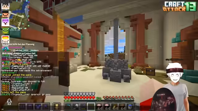 16:04:53Die Inspiration für den Bau des Infinity Castle in Craft Attack kommt vom Film Demon Slayer, den Eli und der Streamer im Kino gesehen und als „richtig geil“ empfunden haben. Es wird diskutiert, ob die Lore der Serie bekannt ist oder nur der Film gesehen wurde, wobei die Serie zuvor geschaut wurde. Die Idee, das Infinity Castle zu bauen, wird als „Todescrash“ empfunden, obwohl die Umsetzung als „nicht stemmbar“ angesehen wird. Die Komplexität des Baus wird durch die Notwendigkeit von Hintergrundinformationen und die Realisierung der Struktur verdeutlicht. Trotz der Herausforderungen wird die Idee als innovativ und spannend für Craft Attack betrachtet.