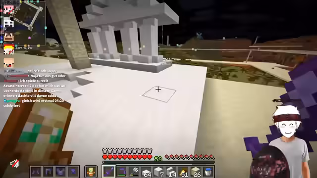 16:16:58Die Assistenz des Streamers geht, und er konzentriert sich auf den Bau eines Tempels. Das Dach wird als „gigakacke“ und „zu hoch“ kritisiert, was dazu führt, dass es wie eine Bank aussieht. Die Säulen werden ebenfalls als „quatschig“ empfunden, und es wird überlegt, sie höher zu machen, um das Dach weniger dominant wirken zu lassen. Die Verwendung von Stairs am Dach wird als Fehler erkannt, da es kein Fachwerkhaus ist. Es wird versucht, das Design zu verbessern, indem die Säulenfüße beibehalten und die Säulenhöhe angepasst werden. Die Diskussion zeigt die iterative Natur des Bauprozesses und die Bedeutung von Community-Feedback für Designentscheidungen.