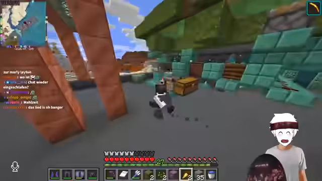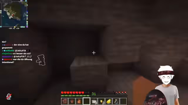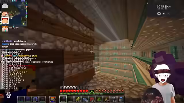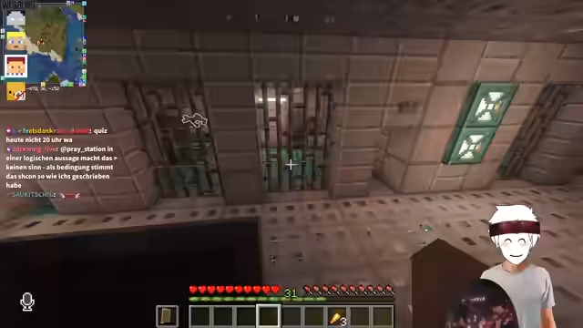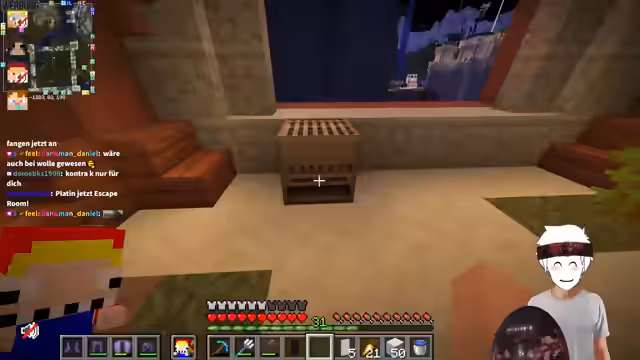 05:14:45Ein Live-Test eines Minecraft-Escape-Rooms wird gestartet. Beide Spieler verfolgen unterschiedliche Lösungsansätze und haben Schwierigkeiten, bestimmte Rätsel zu lösen, insbesondere bei der Herstellung eines Angel-Items und beim Finden von versteckten Objekten wie einem String. Der Spieler mit der Facecam wird kritisiert, da er zu wenig über seine Gedanken und Aktionen spricht.