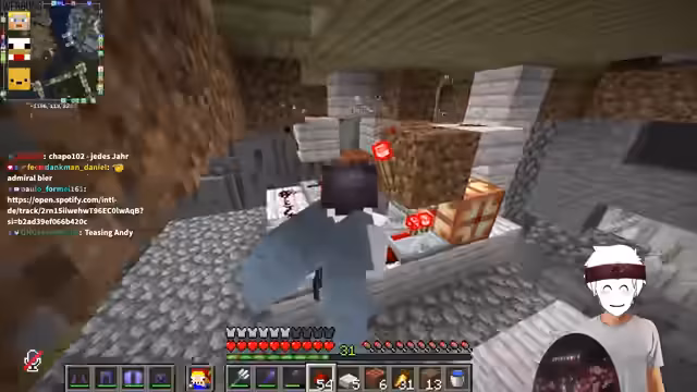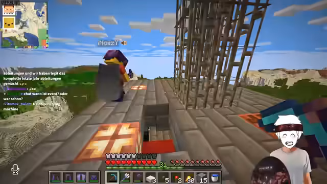01:19:35Es wird über einen möglichen Diebstahl eines L.A. (Minecraft-Charakter) gesprochen, der bei der Base des Streamers herumfliegt. Es wird vermutet, dass es Minas L.A. sein könnte, das sie gestern verloren hat. Der Streamer stellt fest, dass das L.A. keinen Nametag hat, was einen Diebstahl weniger offensichtlich machen würde. Die Diskussion wechselt zu bizarren Aktivitäten anderer Spieler, insbesondere Mina, die eine schreiende Ziege geschenkt bekam, die dann von einem Zombie über einem Lagerfeuer aufgehängt wurde. Der Streamer distanziert sich von diesen Ereignissen und betont, lediglich Berichterstatter zu sein, während er sich auf das bevorstehende Quiz und den Bau eines Lagersystems vorbereitet.