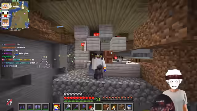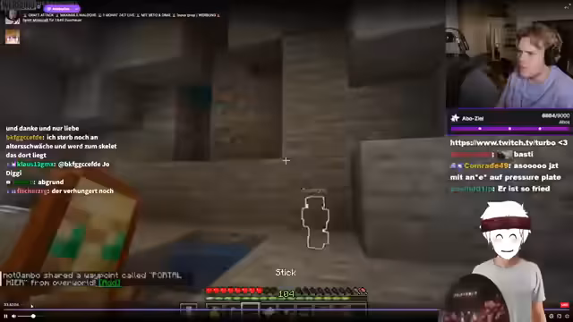 03:18:14Der Streamer setzt seine Erkundung in einer komplexen Höhle fort, auf der Suche nach einer Lösung für ein Rätsel. Er bemerkt Sensoren, die auf seine Bewegungen reagieren, und vermutet, dass er alle auslösen oder in einer bestimmten Reihenfolge aktivieren muss. Während seiner Suche findet er verschiedene Gegenstände wie Bambus, einen String und einen Kompass. Er entdeckt auch einen Crafting Table und eine Wasserstelle, die zum Angeln geeignet zu sein scheint. Die Höhle ist so detailliert gebaut, dass der Streamer in jeder Ecke ein potenzielles Rätsel oder einen versteckten Button vermutet. Er muss vorsichtig vorgehen, um keine wichtigen Gegenstände zu verlieren oder in Fallen zu tappen, und versucht, die Hinweise auf einem gefundenen Zettel zu entschlüsseln, der 'C plus S ist größer als 2S und 2C' besagt.
