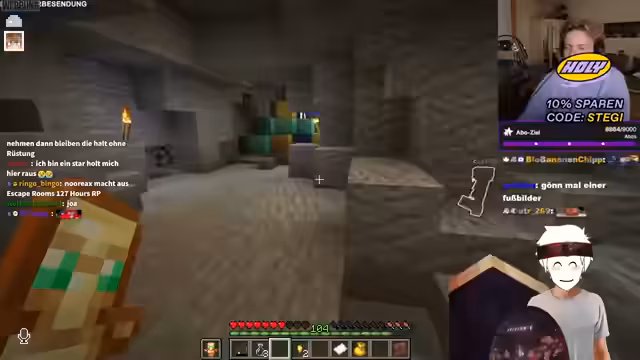 02:58:23Im Escape Room versucht der Streamer, sich in seiner Zelle zu orientieren und erste Rätsel zu lösen. Er untersucht die Umgebung, darunter ein Bett, eine Toilette, ein Waschbecken und einen Crafting Table. Er probiert verschiedene Interaktionen aus, wie das Werfen von Items in die Toilette oder das Benutzen des Crafting Tables, zunächst ohne Erfolg. Die Suche nach Hinweisen führt ihn zu einem versteckten Ofen und Sand, was die Lösungsmöglichkeiten erweitert. Er entdeckt Sensoren und versteckte Mechanismen, die auf die Interaktion mit bestimmten Objekten hindeuten. Die Rätsel erfordern kreatives Denken und das Kombinieren von gefundenen Items, um neue Bereiche freizuschalten. Der Streamer muss Hunger verlieren, um Zombiefleisch essen zu können, was ein weiteres Rätsel darstellt. Schließlich gelingt es ihm, Glas zu schmelzen und Flaschen zu craften, um Wasser zu schöpfen und einen Kessel zu befüllen, was ihn in die Kanalisation führt und den nächsten Abschnitt des Escape Rooms eröffnet.