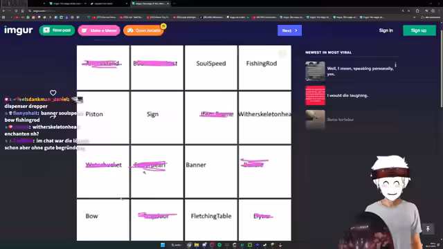 09:55:56Der Streamer startet eine neue Quiz-Runde mit Minecraft-spezifischen Fragen. Die Aufgabe der Zuschauer ist es, Kategorien für verschiedene Gegenstände zu finden, die durch Rechtsklick interagierbar sind. Nach einigem Rätseln wird die Lösung gefunden: Bow, Fishing Rod, Ender Pearl und Water Bucket. Erfolgreiche Antworten belohnt der Streamer mit positiven Reaktionen und lobt die kreativen Lösungsansätze der Community.
