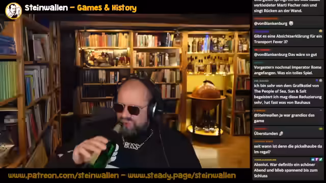 00:33:25Beim Whisky-Tasting wird ein Ben Rennes der Marke Murray MacDavid probiert, der acht Jahre in einem Madeira-Weinfass gelagert wurde. Der Streamer beschreibt den intensiven Duft nach Rum, Rosinen und Marzipan. Im Geschmack dominiert zunächst die 55-prozentige Stärke, welche nach Zugabe von Wasser aber harmonischer wird und Noten von Orangen, Schokolade und Honig offenbart. Die Aufmachung und die süßen Noten des Whiskys werden im Chat gelobt.