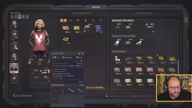 03:44:00Nach dem Kampf wird die Beute sortiert und Ausrüstung optimiert. Dabei wird ein kritischer Fehler in der Ausrüstungslogik entdeckt: Ein Stahlhelm wurde fälschlicherweise als leichte Rüstung klassifiziert und steht einem Sprinter-Perk nicht zur Verfügung. Dies führt zu einer Neubewertung der Ausrüstungsverteilung und der Notwendigkeit, zukünftig besser auf Perk-Abhängigkeiten zu achten.