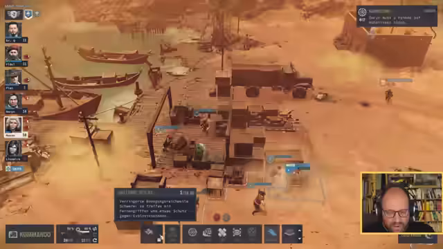 00:55:55Der Streamer lädt den Spielstand von Jagged Alliance 3 und berichtet über die aktuelle Situation. Das A-Team kämpft auf Ernie Island, während das B-Team und das Logistik-Team wichtige Aufgaben erledigen. Nach teuren Einkäufen im Shop, bei denen das Team speziell auf NATO-Munition umstellt, beginnt eine komplexe Logistikphase. Das Logistik-Team transportiert Nachschub zum B-Team, während Larry die Munitionsherstellung aufnimmt. Nachdem das A-Team genesen und ausgerüstet ist, beginnt der nächste Einsatz, ein riskanter Angriff auf einen stark gesicherten Sektor mit Feinden in überlegener Position.