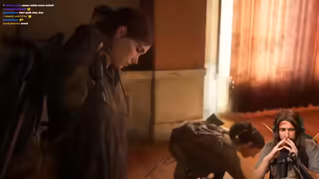 05:11:03Nachdem Dina den Verrat begangen hat, agiert Ellie im Versteck. Die Munition ist extrem knapp, oft nur ein oder zwei Schuss pro Waffe vorhanden, was jedes Vorgehen zu einem hochriskanten Unterfangen macht. Der Streamer beschreibt die Lage als pervers und frustrierend, da selbst das Looten in Räumen kaum Ertrag bringt. Die fortwährenden Kämpfe erfordern maximalen Fokus, um nicht entdeckt zu werden, da ein einziger Treffer den Tod bedeutet.