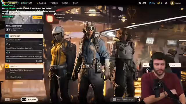03:05:12Die Spieler bereiten sich auf die Arc Raiders-Session vor, wobei die Lautstärke des Spiels im Menü als zu hoch empfunden wird. Es wird über die Spielmechaniken gesprochen, insbesondere über das Prestige-System, das es Spielern ermöglicht, ihren Raider zurückzusetzen und Skillpunkte zu erhalten. Dieses System dient als Alternative zu Wipes und ermöglicht es den Spielern, ihre Charaktere weiterzuentwickeln. Es wird auch über die Teamkonstellationen und die Präferenzen der Spieler für Trios oder Duos diskutiert. Schließlich wird eine Trio-Konstellation mit Sterzik, Zombie und einem weiteren Spieler festgelegt, da Sterzik nur noch eine halbe Stunde Zeit hat. Die Spieler rüsten sich mit Waffen und Heilmitteln aus und wählen die Karte 'Buried City' für ihre erste Runde.