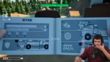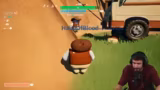 01:03:12Die Kooperation im Spiel gestaltet sich holprig. Nachdem der erste Wegabschnitt mit einem selbstgebauten Steg überbrückt ist, müssen die Spieler feststellen, dass der Wohnwagen nicht durch eine enge Röhre passt. Daraufhin versucht ein Spieler, die Röhre mit Brettern zu blockieren, während andere versuchen, sie mit Werkzeugen zu entfernen. Das Zusammenspiel ist unkoordiniert und führt zu chaotischen und komischen Situationen.