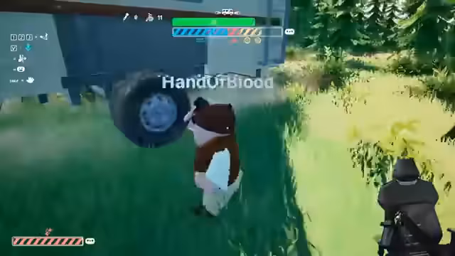 02:41:39Die Gruppe versucht vorsichtig, das Fahrzeug eine Klippe hinunterzulassen, wobei die Fernbedienung und eine Kippe gleichzeitig bedient werden müssen. Die Aktion verläuft chaotisch, und Kalle, der zurückgekehrt ist, wird in die Bergung miteinbezogen. Nach mehreren Versuchen und dem Einsatz eines Wagenhebers gelingt es, das Fahrzeug zu bewegen, jedoch erleidet es weitere Schäden. Die Karosserie ist stark in Mitleidenschaft gezogen, und es wird erklärt, dass das grüne Symbol die Panzerung und das blaue Symbol den Gesamtzustand des Autos anzeigt. Trotz der Schäden wird beschlossen, die Fahrt fortzusetzen, wobei die Spieler sich auf eine bevorstehende Begegnung mit einem Bären vorbereiten. Die Stimmung ist angespannt, aber auch humorvoll, während die Spieler versuchen, das Beste aus der Situation zu machen.