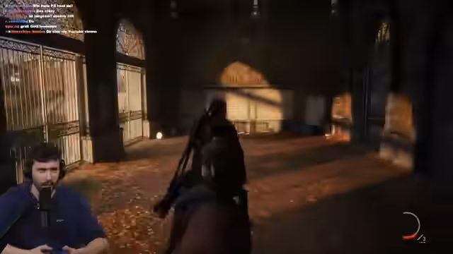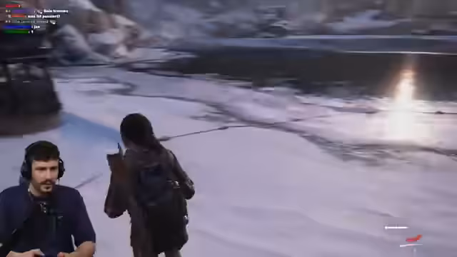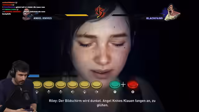 02:33:25Joel und Ellie fliehen durch eine Stadt, die von Infizierten beherrscht wird. Der Streamer muss aggressiv und konsequent vorgehen, um die beiden vor Angreifern zu schützen. Er kritisiert die Brutalität der Situation, in der er töten muss, um nicht selbst getötet zu werden, und nutzt jede verfügbare Waffe, von Flaschen bis zu Pfeilen, um sich und Ellie zu verteidigen.