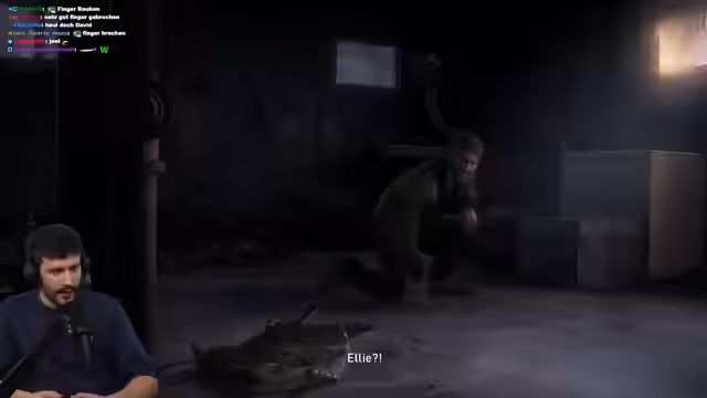 00:27:47Das Spiel wird fortgesetzt, nachdem Joel und Ellie eine Differenzierung überklagt haben und Joel Ellie nun selbst zum Arzt bringen möchte. Die Szene spielt in einem großen, krankenhausähnlichen Komplex. Der Streamer interagiert intensiv mit dem Chat, führt selbstironische Dialoge und nutzt Gelegenheiten, sich im Spiel mit Gegenständen wie einem Flammenwerfer auszustatten. Der Fokus liegt auf der Erkundung der Umgebung und dem Management der Ressourcen.
