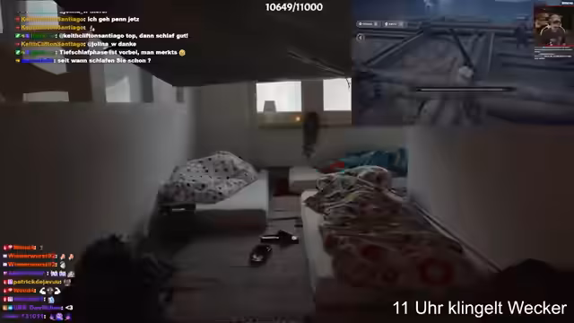 11:39:56Der Streamer findet es ultra wichtig, dass sie morgen früh nicht so gezeitbar bleiben, sondern direkt Vollgas geben. Sie müssen sich einen Plan machen, wie lange sie schlafen. Elf Uhr ist cool und reicht safe. Sie sind nicht zum Spaß hier. Der Streamer kommentiert, dass sie Action haben und dass das Feuer ausgemacht werden muss. Er geht Zähneputzen und kommentiert, dass er heute ziemlich aufgestanden ist. Der Streamer kommentiert, dass oben keiner wohnen kann, weil er sich so auf den Tisch gehämmert und alles und geschrien hat. Er fragt, ob jetzt Karaoke kommt und kommentiert, dass es direkt weitergeht mit Karaoke. Der Streamer fragt, ob er Bild in Bild irgendwas anmachen soll, während sie pennen. Er schlägt Elden Ring mit Papa Platte vor oder Crusader Kings. Der Streamer kommentiert, dass Text-to-Speech echt ultra klein ist. Er sucht jetzt einfach aus, was er anmacht. Der Streamer kommentiert, dass Endring mit Papaplatte läuft und dass er einen Wecker auf 11 Uhr klingeln lässt. Er fragt, ob er einen Chat hier machen soll, weil da pennst du. Der Streamer kommentiert, dass Städte und Hanno es ins neue Jules-Video geschafft haben. Er entschuldigt sich für die Lautstärke und kommentiert, dass es der Eldling-Elfen ist. Der Streamer macht Autoplay direkt nächste, wenn's durch ist und macht über die Nacht E-Mode only. Er kommentiert, dass sie E-Mode only machen, wenn sie pennen, damit die Mods auch pennen können. Der Streamer fragt, ob sie irgendwie ein Licht ausmachen müssen und kommentiert, dass nebenan ist es auch dunkel ist. Sie gehen pennen und der Streamer macht E-Mode-only an. Er lässt das Video jetzt laufen und macht heute fast Celtic. Der Streamer verabschiedet sich und kündigt an, dass er Samstag nach Köln reist und sie Sonntag das Finale von Elden Ring aus seiner Bude streamen. Er guckt sich die mal an, ob er aufgeräumt ist, Staub gewischt und so. Dann machen sie da das Finale, quasi Koop nebeneinander. Der Streamer kommentiert, dass er seine Wut ein bisschen physisch kanalisieren kann dann. Er fragt, warum keiner mehr schreibt und kommentiert, dass um 16 Uhr Kevin antwortet, welche Bestrafung sie machen.