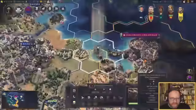 05:11:31Der Spieler erkennt, dass die Grenzen geschlossen wurden und er nicht mehr frei durch die Welt reisen kann. Es gibt eine enge Allianz mit Karl. Der Spieler plant den Einsatz von Schiffen und Militäreinheiten für mögliche Konflikte. Er hat Angst vor einem Krieg mit Isabella, die starke Einheiten hat. Der Spieler überlegt alternative Pläne, wie die Gründung einer Siedlung in der neuen Welt oder die Nutzung von Suzerenität.