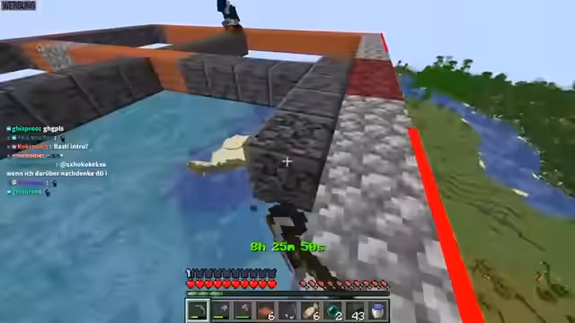 01:01:59Die Streamer planen den Bau einer Zombie-Farm und diskutieren die dafür benötigten Materialien. Zunächst werden Steinziegel hergestellt, wobei sie sich für die polierte Variante entscheiden, da diese moderner wirkt. Eine unendliche Wasserquelle soll integriert werden. Es wird über das Alter von einem der beiden gesprochen und wie sich dies auf Tarife auswirkt. Das Team räumt hässliche Strukturen ab, wobei ein zufälliger Rand zur Orientierung beibehalten wird. Um das Spawnen von Monstern zu verhindern, soll eine große Fläche mit Steinplatten abgedeckt werden. Dabei wird überlegt, ob die Spieler in der Nähe der Killing Station stehen oder eine separate Position einnehmen sollen. Im weiteren Verlauf wird die Mitte der Farm markiert, und es wird überlegt, ob Halbplatten verwendet werden sollen, um das Spawnen zu beeinflussen. Holz wird benötigt, aber die Holzproduktion ist begrenzt, weshalb die Zuschauer Stegi auffordern, Holz zu beschaffen. Die Streamer sprechen über die Notwendigkeit einer effizienten Farm und die Vorteile, wenn Basti sich vorher informiert hat. Es werden 18 Blöcke in die Höhe gebaut, und die Zuschauer werden gebeten, sich zu entspannen, da dies der Fallschacht sein wird.
