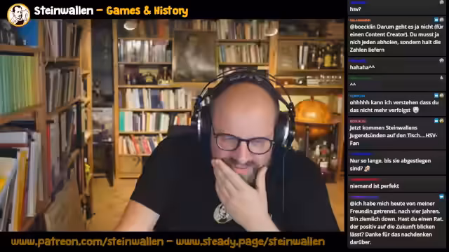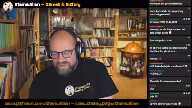00:22:35Nach einem Podiumsdiskussions-Besuch in Paderborn (mit Stau-Problemen auf der A7) reflektiert der Streamer die Geschichte seines Nicknames. Er wurde an das SI-Forum (Strategikon Interactive) erinnert, bei dem er sich 2002 anmeldete. Ursprünglich wollte er 'Wallenstein' nutzen, was vergeben war, weshalb er 'Steinbein' wählte – der Ursprung von 'Steinwallen'. Das Forum existiert noch und gilt als geschichtsträchtiges Relikt aus prä-Discord-Zeiten, wo strukturierte Diskussionen üblich waren. Der Streamer bedauert leicht, dass Forumskultur gegenüber Discord zurückging, lobt aber die aktive Community.