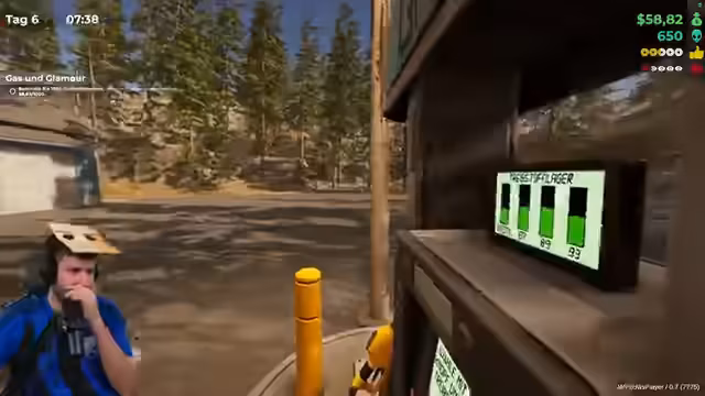 03:39:13Plötzlich wird ein Nachbar erwähnt, der 'Local Guide' ist und sich 'befruchtet' hat, was auf eine unerwartete Wendung hindeutet. Der Streamer erzählt, dass er ebenfalls im Laden abgeschleimt hat und fleißig Proben sammelt. Das Thema wird schnell verworfen, als er einen Geldautomaten entdeckt und ein FBI-Agent auftaucht, der für 40 Dollar tankt. Der Fokus liegt weiterhin auf dem täglichen Kampf mit den preissensiblen Kunden und dem Management eines verdächtigen Geschäfts.