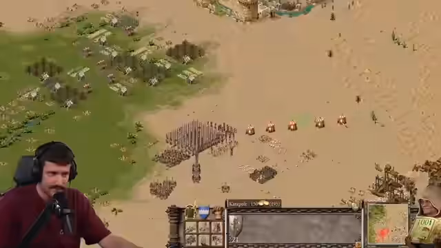 02:52:39Der Streamer und Max spielen nun intensiv Stronghold Crusader im Koop-Modus. Sie kämpfen gegen mehrere Gegner auf einer kleinen, heiklen Karte mit vielen Eingängen zu ihren Basen. Der Fokus liegt auf Verteidigung und Ressourcenmanagement, da ständig Angriffe erfolgen. Der Streamer baut Mauern, Türme und produziert Truppen zum Schutz. Es kommt zu spannenden Momenten, in denen sie knapp überleben oder Ressourcen austauschen müssen. Der Streamer zeigt sich erstaunt über die Schwierigkeit des Spiels und die Strategien der Gegner, besonders als diese spawn-trappen.
