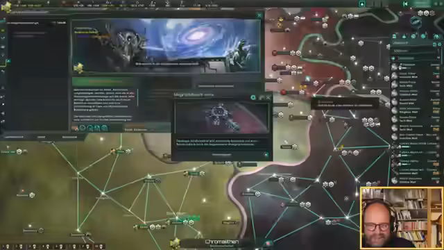05:52:34Der Stream reflektiert über lang zurückliegende Spieler-Endgame-Krisen und den Aufstiegsvorteile im Stellaris-Multiplayer. Die Chromaliten etablieren eine Botschaft der nerdischen Kooperation, als sie auf das Home Network Interface treffen. In einem tiefgründigen Dialog stellen beide Fraktionen ihre Existenzgrundlage infrage. Die Chromaliten erkennen, dass sie nicht Gott sind, sondern sich selbst als Verteidiger des Lebens definieren, während ihre Berechnungen eine Wahrscheinlichkeit von 2,73% für Göttlichkeit zeigen. Es wird eine Verbindung zur Roboter-Union hergestellt und die Gefahr durch die Fraktion Ordo Mortales diskutiert, die eine zunehmende Wahrscheinlichkeit von 48% zur Zerstörung des Universums aufweist.