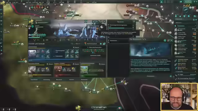 04:37:41Das Gameplay dreht sich um die Vorbereitung eines Krieges gegen die Pilos-Robo-Union, um Günther zu befreien. Es werden die Kriegsgründe analysiert, da nur „Unterwerfung“ oder „Annexion“ gegen die Maschinenfraktion möglich sind, nicht jedoch ein „Regimewechsel“. Die Flottenstärke wird überprüft, wobei die Feinde mit nahezu einer Million Schiffen überlegen erscheinen. Eine strategische Kooperation mit der Föderation „Freiheit für Günther“ wird geplant, die das Ziel verfolgt, eine neue, emotionsfreundliche Regierung in der Pilos-Robo-Union einzusetzen. Parallel dazu führen die Chromaliten diplomatische Gespräche mit der Pilos-Fraktion, um den Verbleib von Günther zu klären und Unterstützung für den beabsichtigten Militärschlag zu sichern.