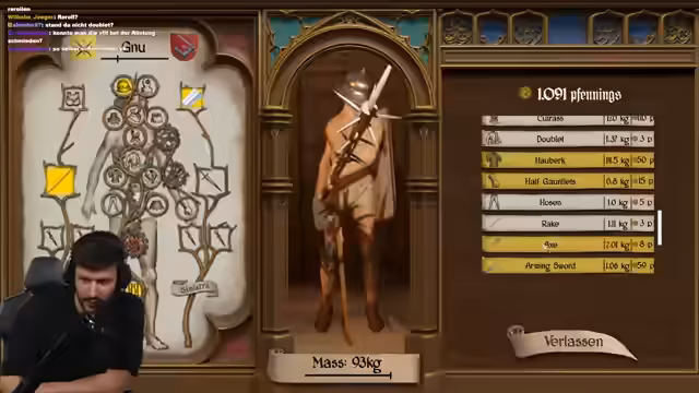 02:49:42Die Unterhaltung wechselt dann zur Vorführung des Spiels Halfsword, einem mittelalterlichen Kampfspiel. Der Streamer zeigt sich sehr enthusiastisch über die Mechaniken des Spiels. Insbesondere die langen Waffen werden von ihm als extrem übermächtig und spaßig beschrieben. Er kämpft sich erfolgreich durch die Ränge, wobei er seine Ausrüstung kontinuierlich verbessert und dabei bestimmte Teile, wie Kettenhemden und Helme, als besonders schick und cool hervorhebt.