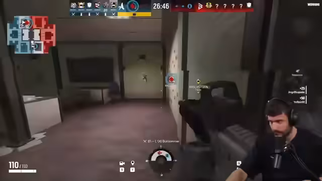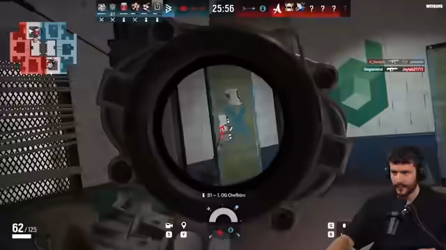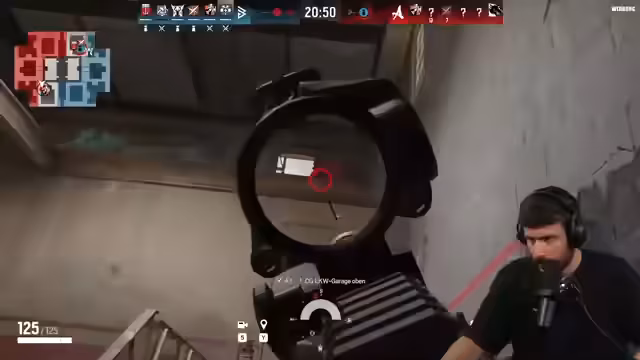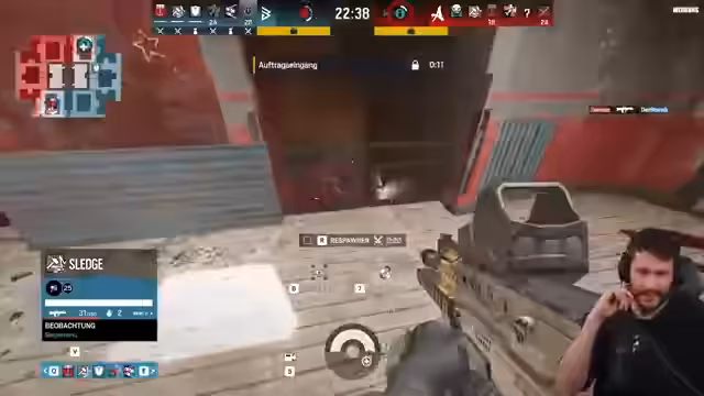 00:19:28Das Team betritt das Spiel Rainbow Six Siege X und wählt für die neue Runde aus zwei verschiedenen Fronten aus. Es wird erklärt, dass es Angreifer und Verteidiger gibt, die gleichzeitig auf der Karte aktiv sind. Das Ziel bleibt das gleiche wie im klassischen Modus: Eine Bombe legen oder verteidigen. Der Streamer vergleicht den Modus positiv mit dem normalen Spiel, da die Downzeit nach dem Tod nur ca. 15 Sekunden beträgt und das Spiel damit schneller und für Neueinsteiger zugänglicher ist. Die Runde endet mit einem durchwachsenen Ergebnis, was die Notwendigkeit besserer Teamkommunikation aufzeigt.