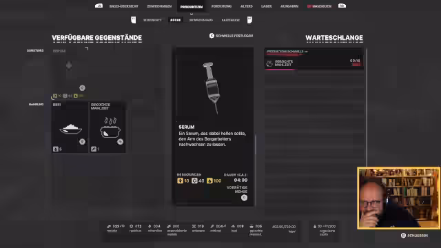 03:54:16Zu Beginn des Stream-Fragments wird die Organisation der Ressourcen und der Personalplanung für die Alters-Arche thematisiert. Der Streamer entscheidet, dass der Forscher in der Werkstatt Filter bauen soll, da diese Tätigkeit nun priorisiert wird. Die Produktion von Strahlungsfiltern wird in den Vordergrund gerückt, während Bohrkartuschen zunächst weniger relevant sind. Es wird betont, dass jede Sekunde genutzt werden muss, um die Schwelle zu erhöhen und Arche zu stabilisieren. Die Aufmerksamkeit gilt hauptsächlich der Minimierung des Risikos für die Arche-Bewohner, insbesondere angesichts bevorstehender Herausforderungen.