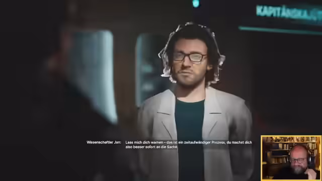 04:25:57Der Streamer spielt Bierpong mit den Charakteren der Arche, um deren Stimmung zu verbessern. Zuerst wird mit dem Botaniker geübt, bevor das Spiel mit dem Techniker fortgesetzt wird. Das Spiel dient als Mittel, um den Ort zu motivieren und die Moral der Charaktere zu heben. Während des Spiels werden Schwierigkeiten wie eine erhöhte Schwierigkeit bei technischen Fähigkeiten und der Betrunkene Zustand der Charaktere thematisiert. Nach erfolgreichem Spiel lernt der Streamer neue Fähigkeiten wie Durchsetzungsvermögen und erkennt das Potenzial solcher Mini-Spiele, um zukünftige Gesprächsoptionen zu beeinflussen.