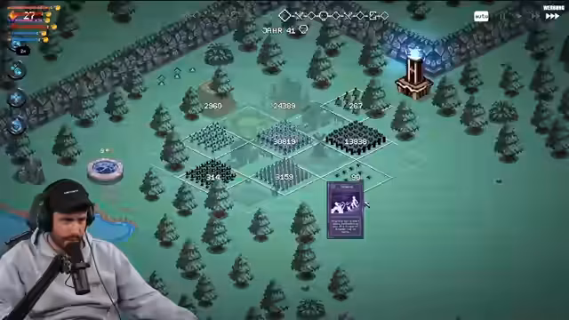 03:04:29Der Stream beginnt mit der Diskussion über die Feinde im Spiel. Es wird eine ausgewogene Nahkampftruppe zusammengestellt und strategisch platziert. Ein Bauernhof wird zur Verstärkung der Truppen genutzt und ein Katapult wird für Angriffe eingesetzt. Die Burg wird als primäre Schadensquelle identifiziert und als erstes Ziel für ein Upgrade ausgewählt, um die Kampfkraft zu erhöhen.
