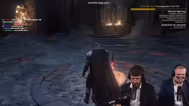 01:23:25Die Streamer setzen ihren Run fort, nachdem sie kurz abgebrochen hatten, und merken an, dass sie mindestens 200 Punkte erreichen müssen. Sie konfrontieren den Pontiff Sulyvahn direkt, was zu einem plötzlichen Tod führt. Der Streamer ist frustriert und überlegt, den Run abzubrechen, entscheidet sich aber dafür, mit Patrick weiterzumachen, der gerade im Stream erscheint. Der Streamer wird im Chat von Zuschauern getrollt, die seinen Tod feiern, was die Situation kompliziert. Sie geben jedoch nicht auf und wollen den Run fortsetzen. Let's go!
