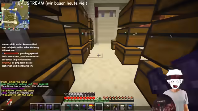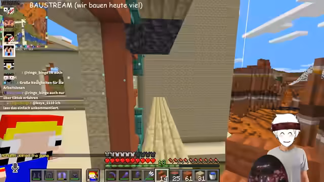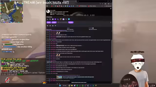 02:14:20Während des Baus des Labyrinths für den Tresor zeigt sich der Streamer frustriert und verwirrt. Er hat Schwierigkeiten, die genaue Struktur und die Ausmaße des finalen Raums zu definieren und fühlt sich von den Vorschlägen des Chats überfordert. Der Chat gibt widersprüchliche Hinweise, was zu seiner Verwirrung beiträgt. Es entsteht ein turbulentes Gespräch, in dem der Streamer versucht, den Überblick zu behalten und gleichzeitig die Bauarbeiten voranzutreiben, was ihn schließlich dazu bewegt, den Stream vorübergehend zu verlassen.