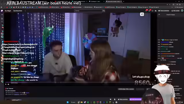 10:27:23Der Streamer führt ein Telefonat mit seinem Freund Hugo, während er live ist. Hugo scheinbar zufällig erwähnt, dass er in einem Jacuzzi ist. Dies führt zu humorvollen Spekulationen im Chat. Später stellt sich heraus, dass es sich um einen vorbereiteten Prank mit dem Streamer Candy handelte, an dem Hugo beteiligt war. Der Streamer gibt an, die Täuschung komplett geglaubt und erst nach einer halben Stunde gemerkt zu haben, dass es nicht echt war.